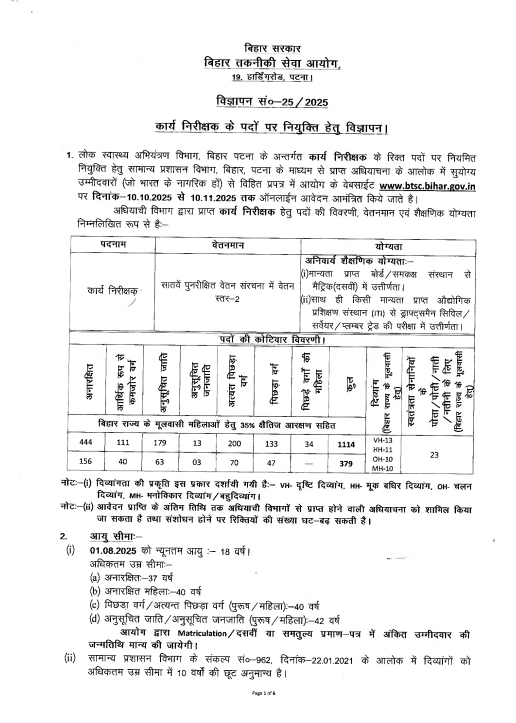 आप BTSC की आधिकारिक वेबसाइट पर जाकर आसानी से ऑनलाइन आवेदन कर सकते हैं। आवेदन लिंक 10 अक्टूबर 2025 को सक्रिय होगा।