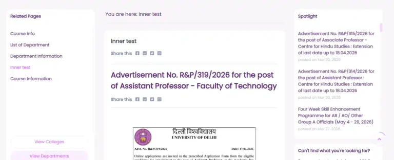 Delhi University Teaching Recruitment 2026 Notification: Details