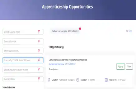 - लॉगिन करें और “Apprenticeship Opportunities” पर क्लिक करें।