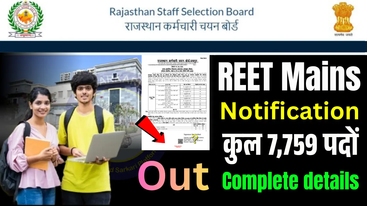 REET Mains Notification 2025 Out: 7759 पदों पर भर्ती शुरू, जानें आवेदन की पूरी प्रक्रिया! November 9, 2025 by Bhavishya Pandit राजस्थान के शिक्षण अभ्यर्थियों के लिए बड़ी खुशखबरी है — REET Mains Notification 2025 आधिकारिक रूप से जारी हो गया …