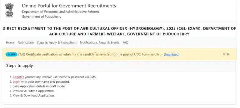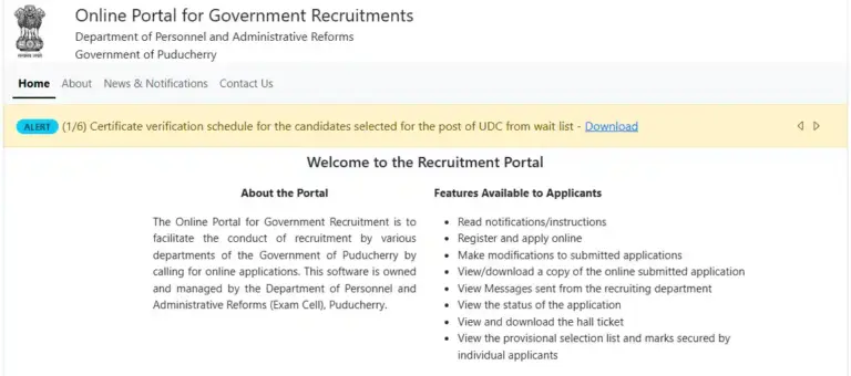 | Official Website | recruitment.py.gov.in |